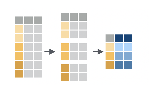 - group_by( ) 함수에 변수를 지정하면 변수 그룹별로 데이터를 분리함.