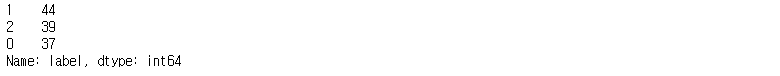 예를 들어, iris 데이터에서 라벨(label) 값을 훈련 및 테스트 데이터에서 동일한 비율을 유지하도록 설정한다고 가정하자. 먼저 stratify 인자를 지정하기 전에 각 데이터의 라벨 비율을 확인해보자. 먼저, 훈련 데이터에서 각 라벨의 비율은 다음과 같다.